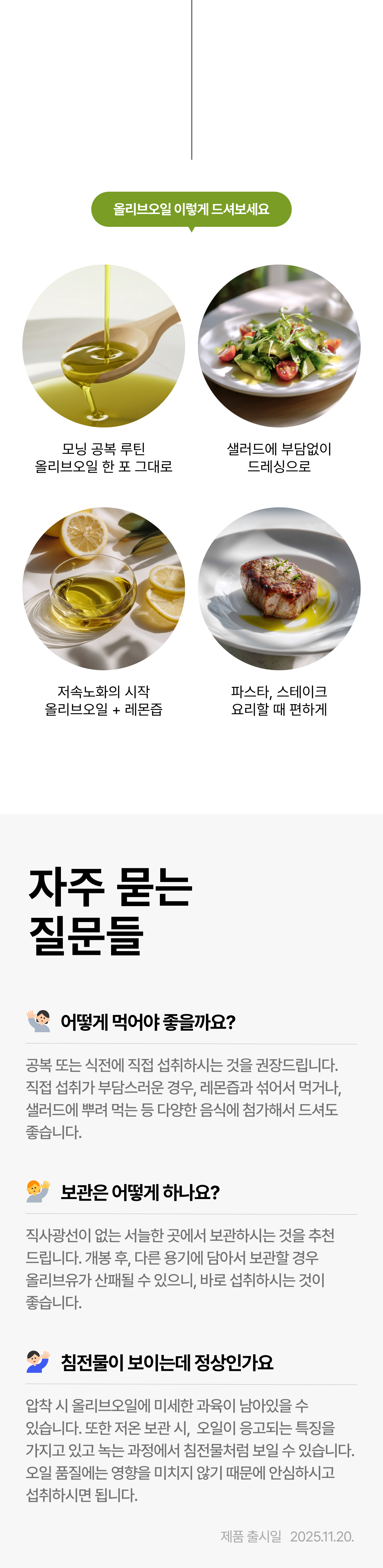 아침 공복에 올리브오일 한 포씩 매일 챙겨먹었을 때 꾸준히 먹으니