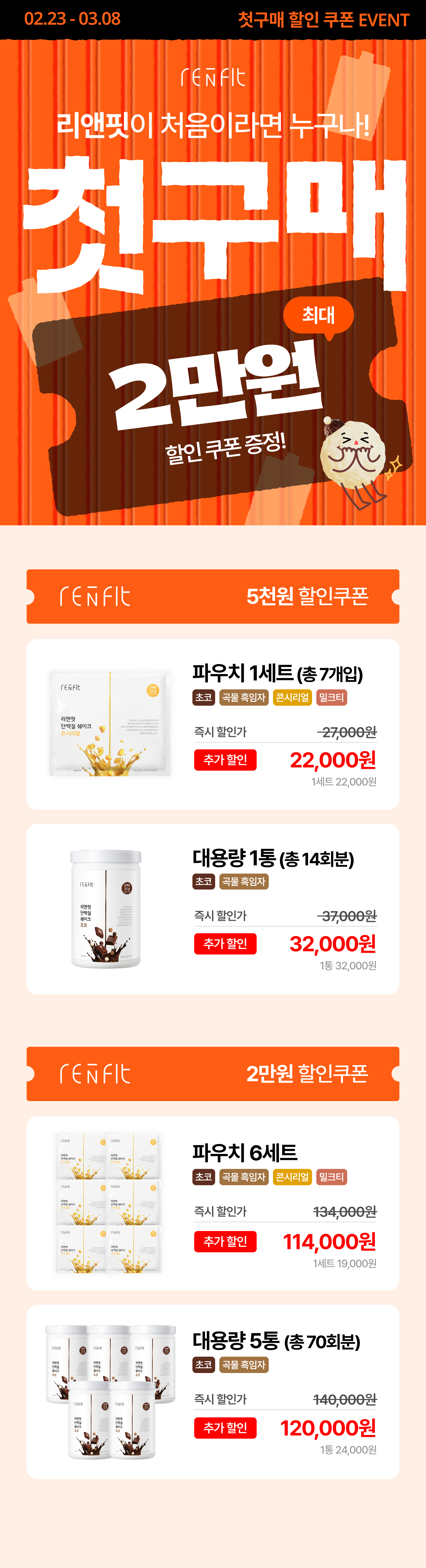 상품 첫구매시 할인적용과 1+1